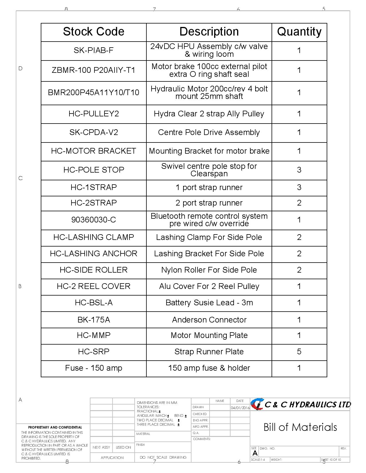Sheeting Kit for 11.5m Tipping Trailer – rev.B