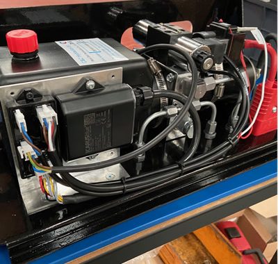 The hydraulic connections are made through the base of the chassis via ¼ BSP bulkhead fittings and the battery connection is made via an Anderson plug again through the base.